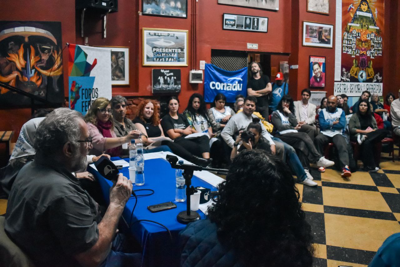 El miércoles 7 de mayo, se realizó el lanzamiento de los Foros Federales hacia el Encuentro por una Universidad Democrática, Popular y Feminista que tiene entre sus organizadores a CONADU Histórica y CONADU. La actividad se realizó en la Casa de las Madres en Buenos Aires y contó con la participación de docentes, estudiantes e investigadores/as. Estuvieron presentes las y los integrantes de la Mesa Ejecutiva de nuestra federación.
